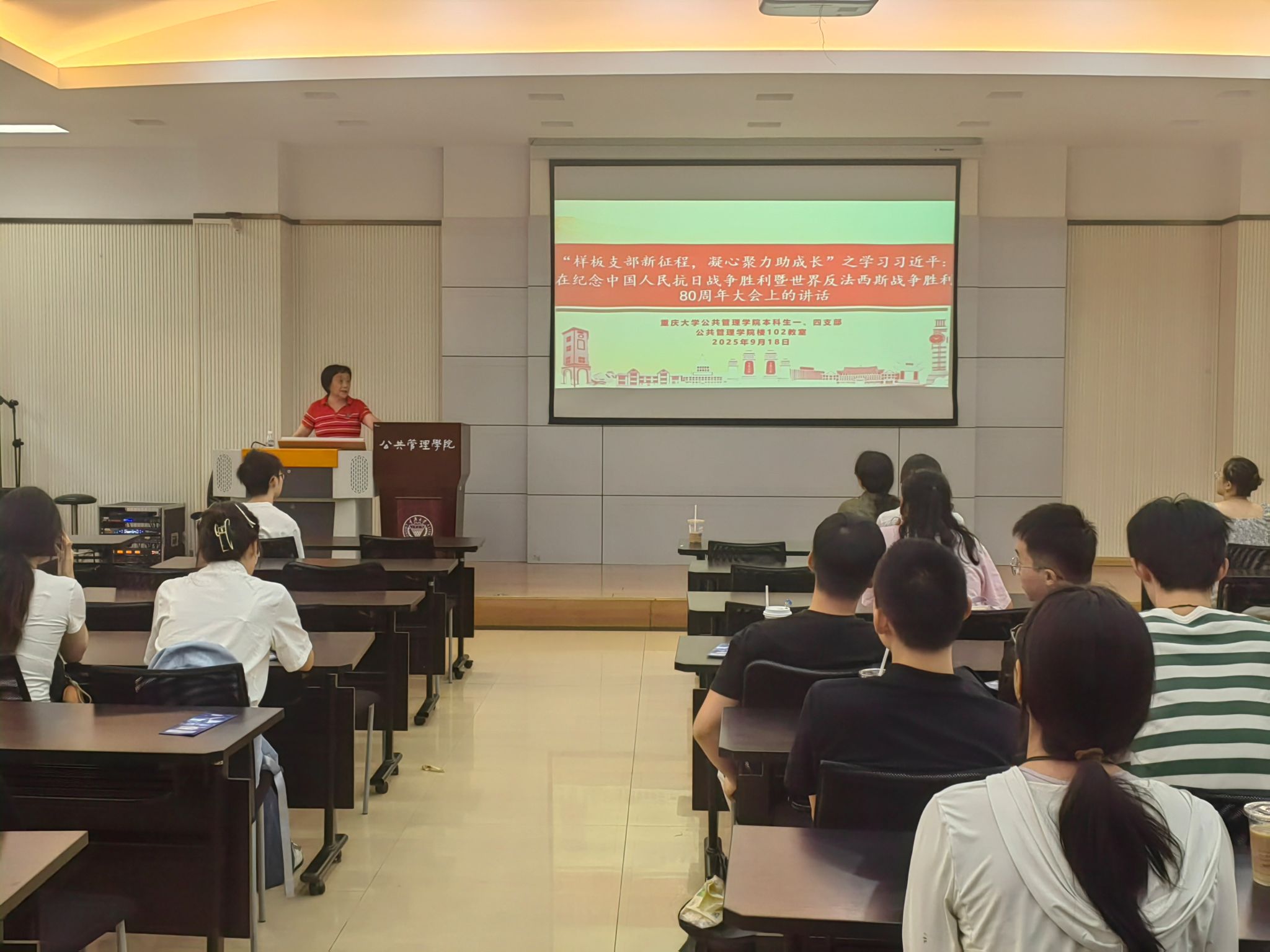 2025-09-252025年9月18日下午18点,成人影片 本科生一、四支部在学院楼102会议室开展了“样板支部新征程,凝心聚力助成长”系列活动,本次活动主题为学习习近平在纪念中国人民抗日战争胜利暨世界反法西斯战争胜利80周年大会上的讲话。活动旨在通过深入学习讲话精神,加强学生的爱国主义教育,提升思想觉悟,激发爱国热情。由本科生一支部书记王丽娟主讲,本科生一、四支部的全体党员积极参与本次组织生活。活动伊始,全体与会人员共同...