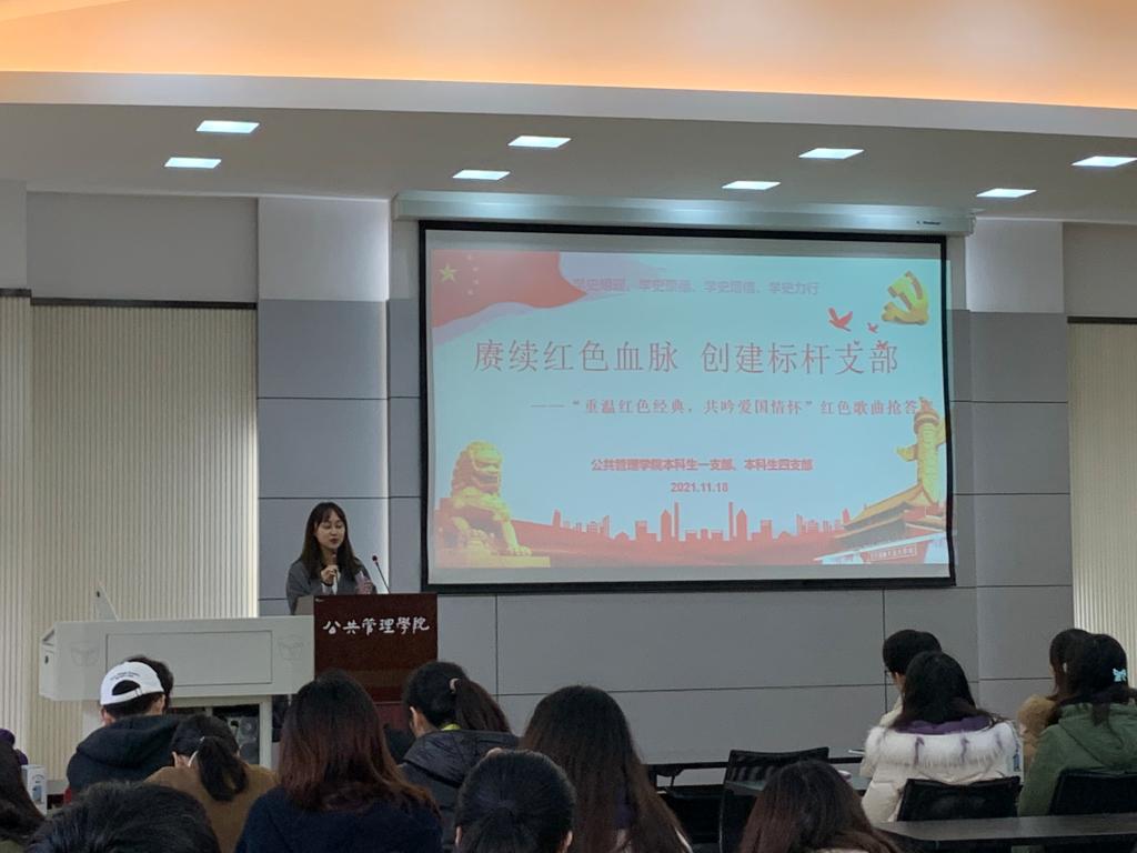 2021-11-26为赓续红色血脉,激发爱国热情,2021年11月18日下午四点,成人影片 本科生一支部、四支部于学院楼102教室举办“赓续红色血脉,创建标杆支部”系列活动之“重温红色经典,共吟爱国情怀”红色歌曲抢答赛。出席本次活动的有一支部书记王丽娟同志、四支部书记李阳阳同志,学院本科生一、四支部全体党员参加比赛。据悉,此次红色歌曲抢答赛以小组为单位进行抢答积分。每答对一首歌曲积一分,个人唱一首歌曲积两分,小组集体唱一首...