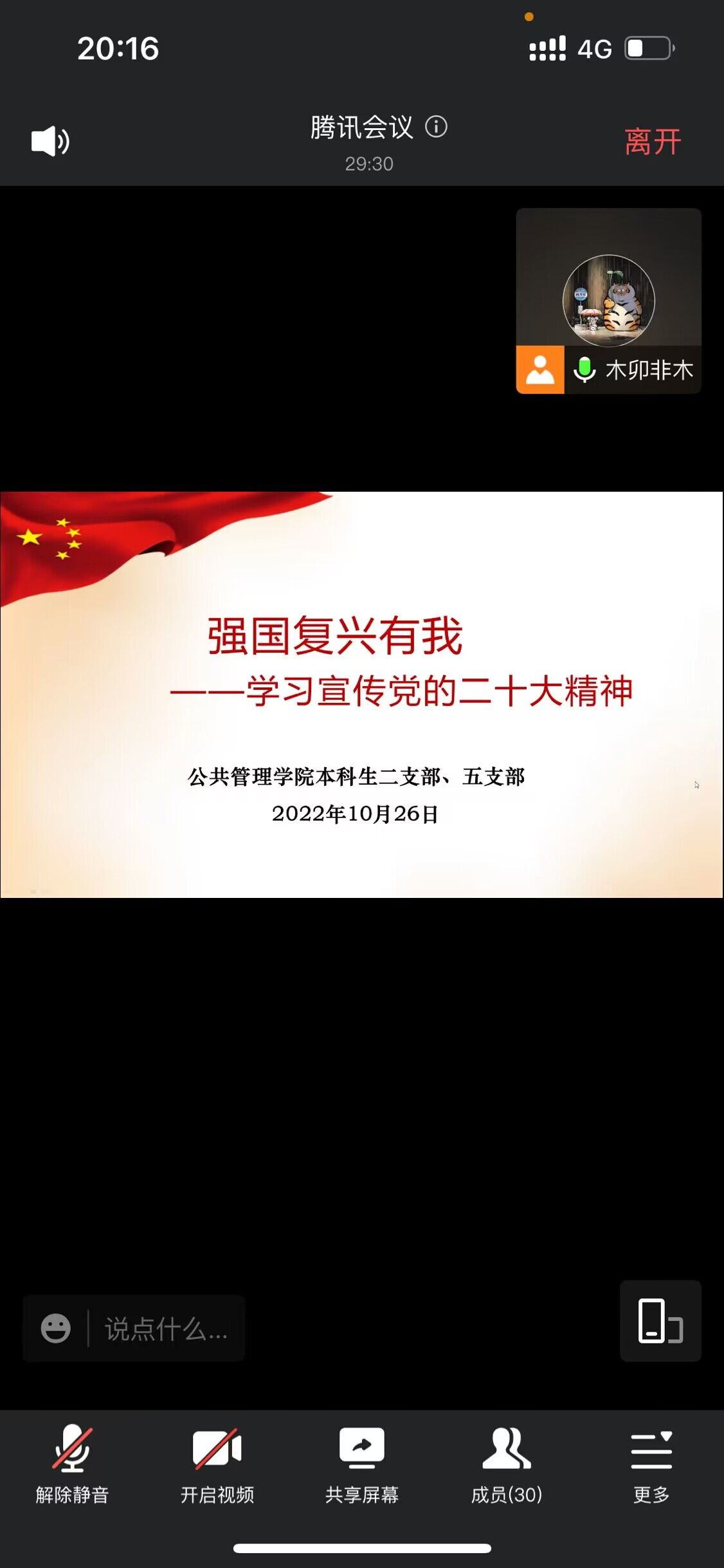 2022-10-272022年10月16日至22日,中国共产党第二十次全国代表大会在北京隆重召开。大会是在全党全国各族人民迈上全面建设社会主义现代化国家新征程、向第二个百年奋斗目标进军的关键时刻召开的一次十分重要的大会。2022年10月26日晚19点30分,成人影片 本科生二、五支部在线上开展了“强国复兴有我——学习宣传党的二十大精神”主题活动。此次活动由本科生二支部书记徐柳老师主持,本科2021级全体入党积极分子也积极参会。活动内容包...