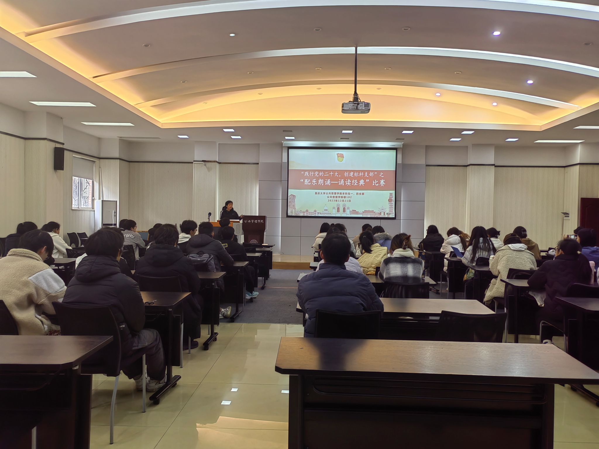 2023年12月21日下午13:00,为了更好的弘扬中华文化,缅怀先辈,体会生生不息的民族生机,并从文学艺术作品中寻找价值的肯定和情感的皈依,成人影片 本科生一、四支部于学院楼102教室举行“党建带团建,创建标杆支部”之“配乐朗诵——诵读经典”比赛,本次活动由成人影片 本科生一支部支部书记王丽娟同志组织,四支部支部书记袁凤同志主持,本科生一、四支部全体党员、2022级全体积极分子参加。本次活动...