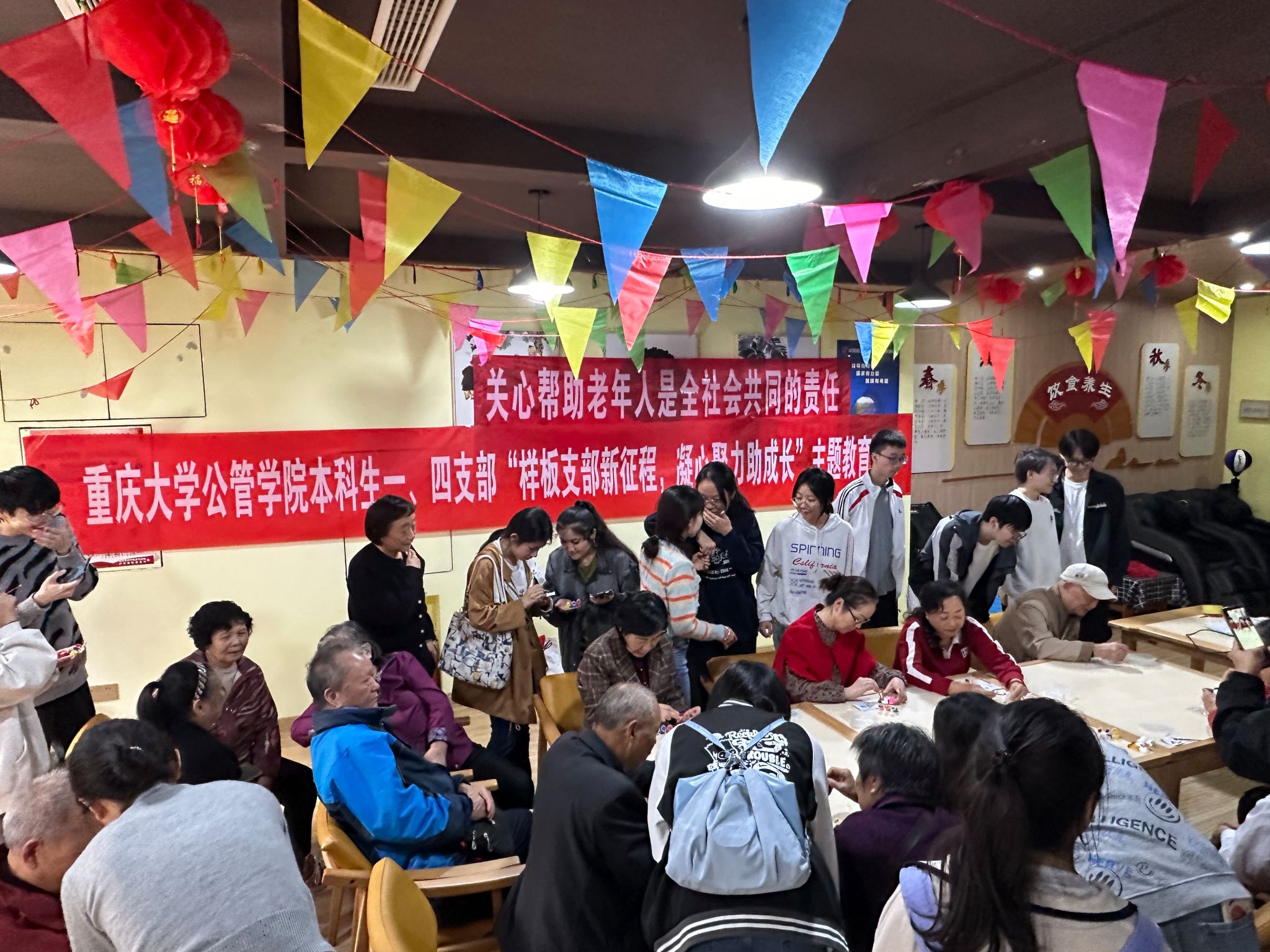2024-11-112024年11月7日,本着为社区老人送去温暖,增进大学生与老年人的感情,弘扬奉献、友爱、互助、进步的志愿精神,并展现重大学子乐于助人的精神面貌的目标,成人影片 本科生一、四支部共同开展“样板支部新征程,凝心聚力助成长”主题教育活动,该活动在重庆市沙坪坝区百康年养老连锁机构渝碚路街道沙杨路社区养老服务站顺利开展。活动开始,同学们先与老人们进行了谈心聊天,老人们逐渐放松下来。然后,为了帮助锻炼老...