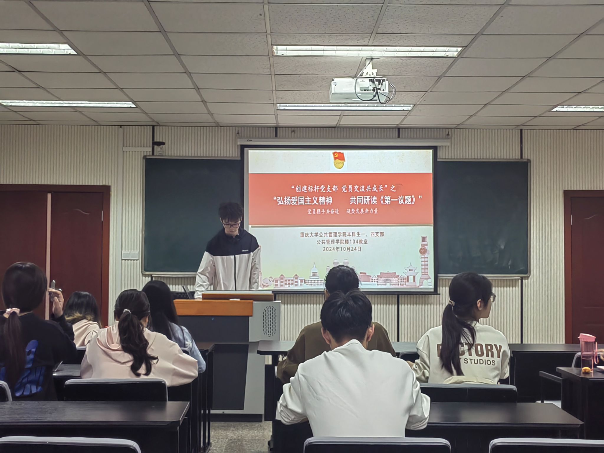 2024-11-01为了加强党的政治建设,提高党员干部的政治站位和政治能力,确保党的理论和路线方针政策得到全面贯彻和执行。2024年10月24日下午15:00,成人影片 本科生一、四支部全体党员、预备党员于学院楼104教室开展“创建标杆党支部——党员交流共成长”之“弘扬爱国主义精神、共同研读《第一议题》”主题活动。本次活动由朱雨同志进行主持。他从聆听习近平总书记教诲、具体要求、我们在行动三个方面带领大家进行了《第一议题...