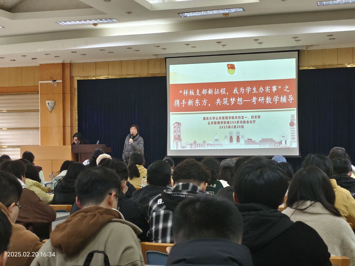数学一直以来都是考研的一大重点,为了帮助即将步入考研阶段的同学们更好地做准备,2025年2月20日下午16:30,在一支部书记王丽娟的组织下,成人影片 本科生一四支部在学院202多功能会议厅举举办“样板支部新征程,我为学生办实事”之携手新东方,共筑梦想——考研数学辅导,全体党员和入党积极分子以及全体团员参加。本次活动围绕考研考情介绍、2026届考研数学常识和2026届考研数学规划三个环节进行展开。活动开始,...