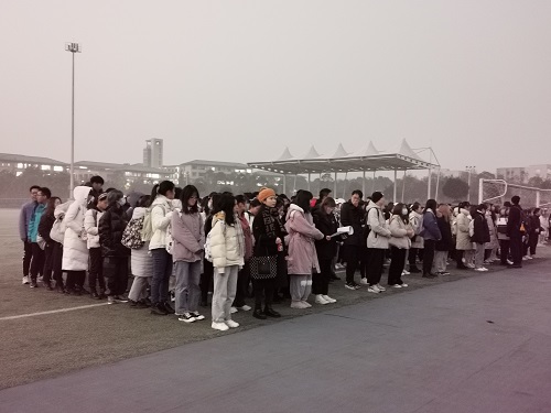 虎溪校区风雨操场参加了学校举行了“升国旗,唱国歌”主题升旗仪式。学办主任兼19级辅导员王丽娟、20级辅导员李珊珊及19、20级全体同学出席了本次仪式。