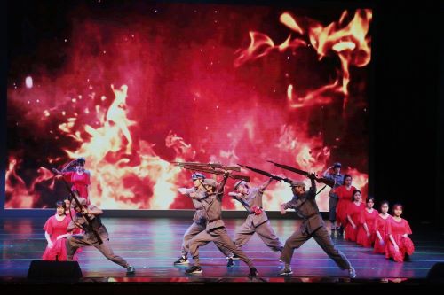 学院本次的参赛曲目为《党旗飘飘》。借助歌曲所反映我们党的发展历程,结合公管学子的全新演绎,我们传达了心中对党的感激,表现了当代大学生勇担民族复兴大任不畏艰难,积极向上的精神风貌。悠扬的音乐奏响,舞台上的灯光随之缓缓点亮。公管健儿们身着军服,挥舞着鲜艳的旗帜闪亮登场。“春风吹开花季的笑容,你用慷慨播种大地葱笼……”歌声响起,身着红色连衣裙的公管姑娘们面带微笑,纤细灵动的手指伴随着音乐翩翩起舞。经过将近一个月的反复练习、改进,融合了舞蹈、舞旗、短剧、朗诵,学院带来的这首《党旗飘飘》整齐流畅、巧思精构,令广大师生耳目一新,无疑是一场有剧情、有温度、更有深度的视听盛宴,赢得了台下观众的阵阵掌声。