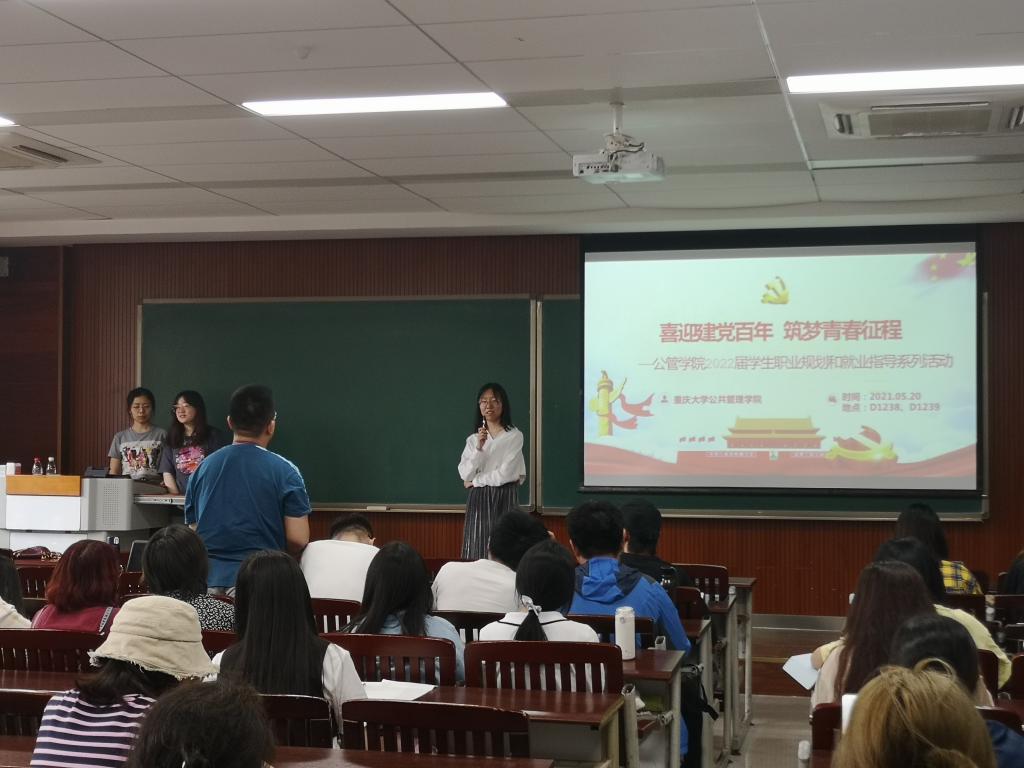 2022届学生的专业特点和主要就业方向,分为三个主要专题分别进行。公管学院团委书记兼2018级本科生辅导员徐柳老师以及2018级全体本科学生参与了本次活动。
