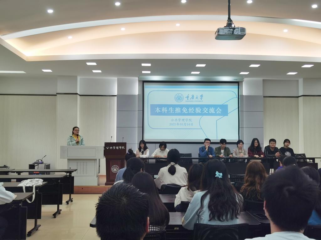 据悉,本次经验分享会旨在向19级的同学们介绍保研经验、解读最新的保研章程、对保研过程中出现的新状况做出分析,帮助学弟学妹们在明年的推免中取得更好的表现。来自18级的蒋颖、李璇、蒋巧玲、胡腾毅、李英娇、潘雨晨、郭姝含、孙珑溢、陈致远、陈启迪、田林斌等五个专业的11位优秀推免生结合自己的推免经验,分别在不同方面向同学们分享了保研推免的有关细则。
