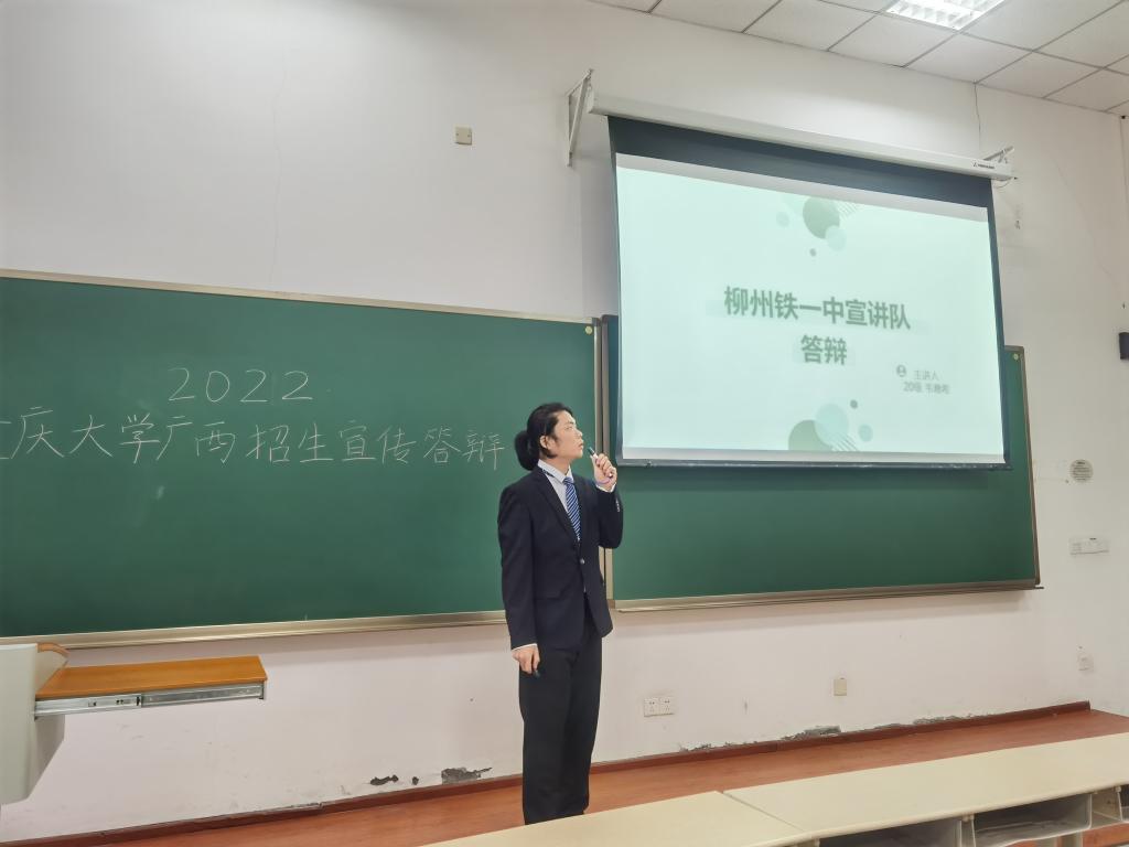 寒假返校招生宣传活动中,广西省宣讲团参加答辩的队伍分别是柳州铁一中宣讲队、南宁三中宣讲队、桂林十八中宣讲队等八支队伍。虽然每支队伍的答辩风格各异,但内容都精彩绝伦,赞声不绝。