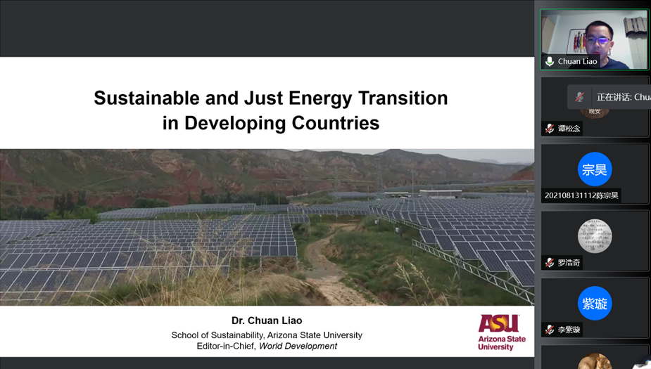 举办的“发展中国家可持续和公正的能源转型”主题讲座通过腾讯会议在线上顺利举行。讲座邀请到美国亚利桑那州立大学可持续发展学院的廖川教授为我们作了题为“Sustainable and Just Energy Transition in Developing Countries”的学术讲座。讲座由成人影片