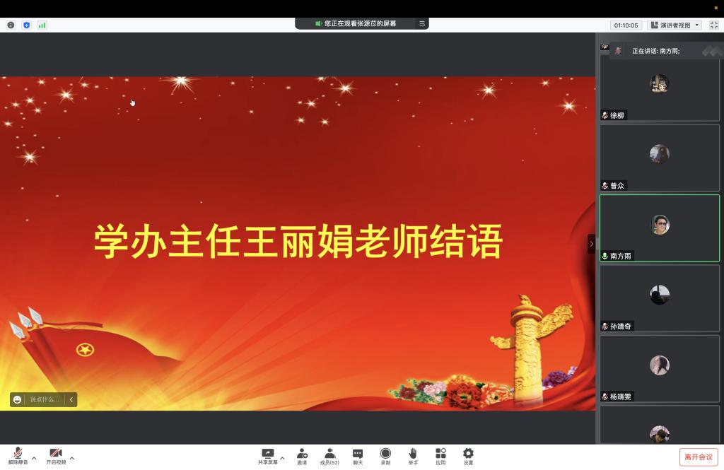 团委学生会对本科生2021级纳新竞选会议如期于线上举行。学办主任兼19级辅导员王丽娟、团委书记兼21级辅导员徐柳、20级辅导员包唅、20级团委学生会主席团成员以及21级参与本次竞选的同学参加会议。