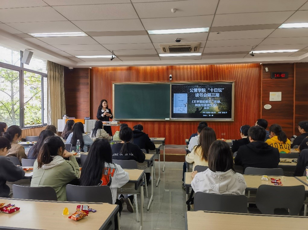 为了搭建思想交流平台,营造阅读经典的氛围并培养学生的学科意识与兴趣,由公管学院公共人力与社会保障系师生共同举办的读书会于2023年3月30日下午2点30分在虎溪校区D1328教室如期举行。本次读书会是继《穷人的银行家》以及《金翼》之后,首次以线下方式举行,由刘一笑老师领读安妮特·拉鲁所作的《不平等的童年:阶级、种族与家庭生活》。读书会吸引了来自公管学院、本科生院、经管学院、管科学院以及外国语学院等多个学院的30多名师生共同参加与热烈讨论。