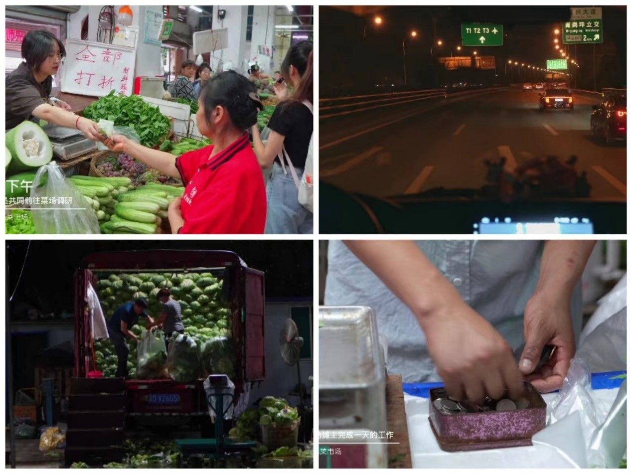 在“建立关系”和“认知互补”部分,导师组让同学们自己去到菜市场,自主说服一位摊主,协助摊主做进货上货到卖货一天的“免费小工”。