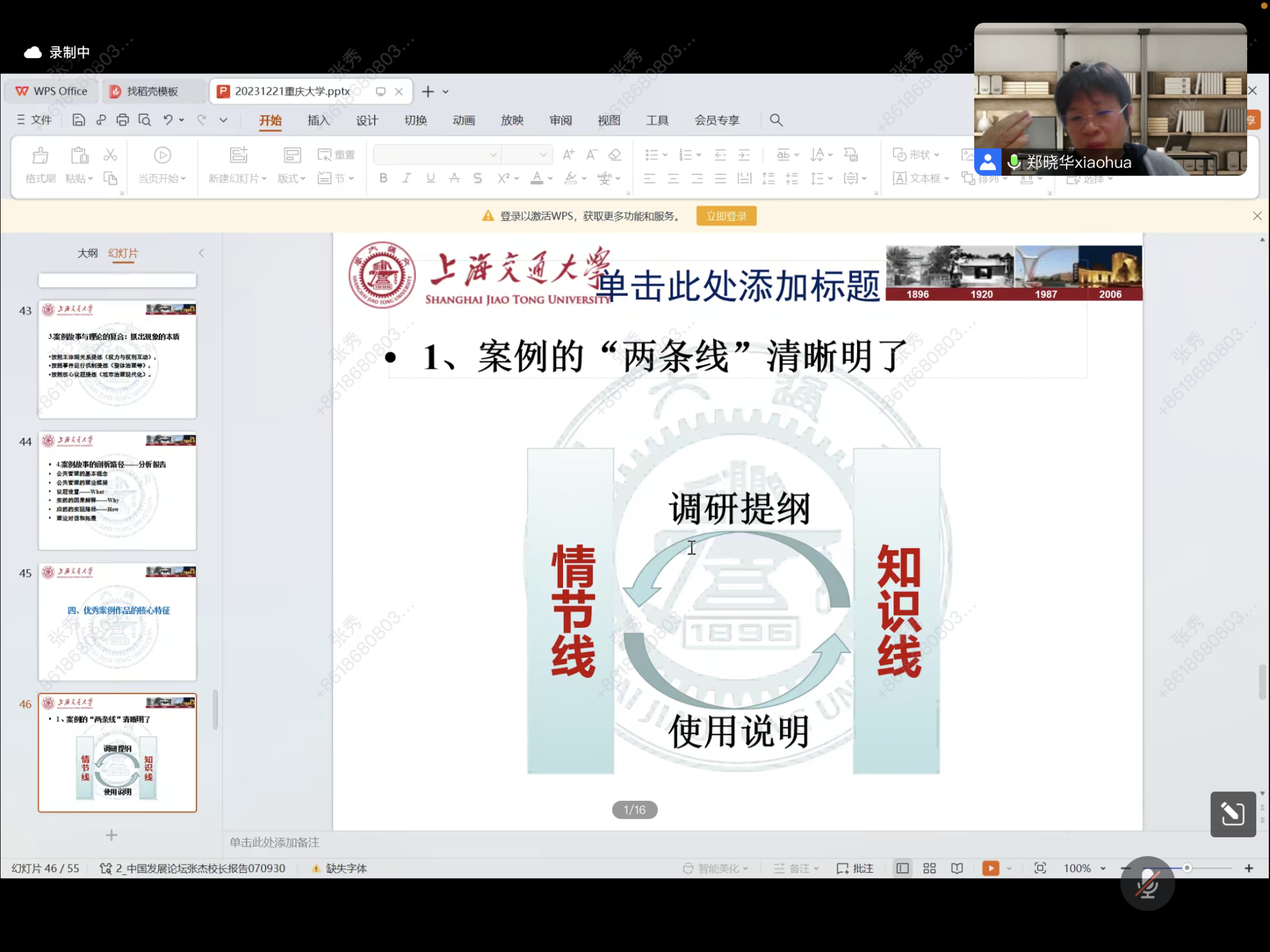 郑晓华老师围绕公共管理案例发展应用的背景和逻辑依据、上海交通大学开展案例教学和案例大赛的组织情况展开讲座,并结合指导案例和评审案例的经验从正方两个方面着重介绍案例正文的编写和案例分析的操作,引导师生形成对参赛案例和教学案例形成规范认识。最后结合案例正文和案例分析阐明未来高质量案例发展的基本要求,助力师生参与案例大赛、教学案例等活动。