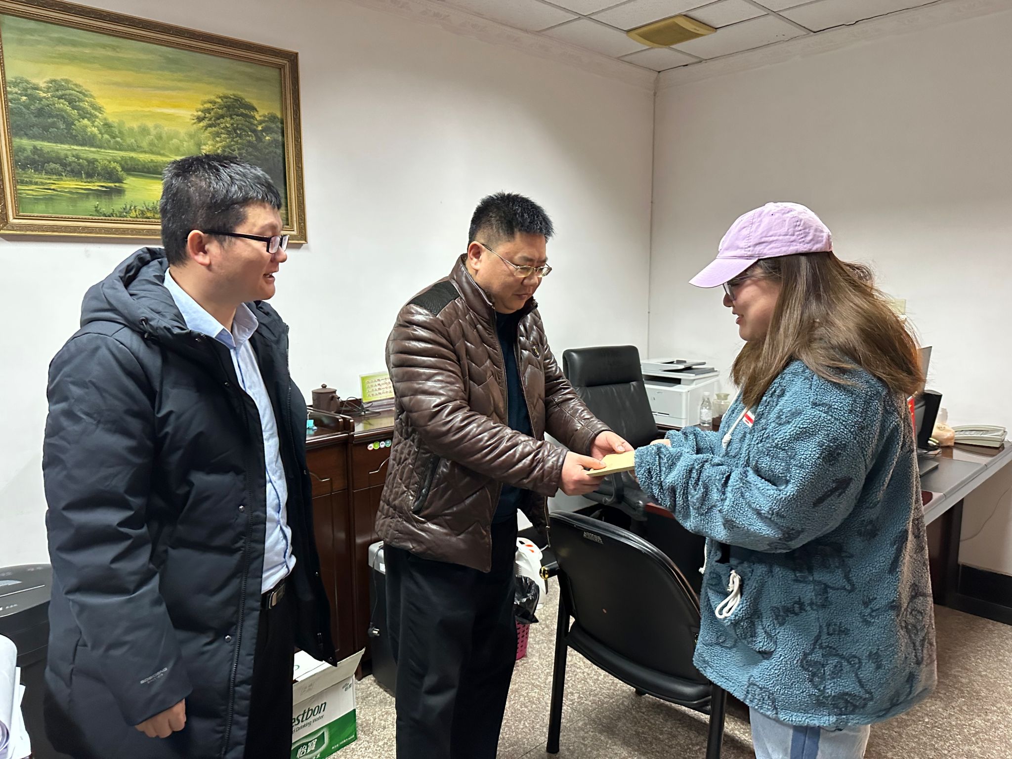 接着慰问了生活困难学生党员2023级公共管理专业硕士研究生代季鹭。周余斌、王辉与学生亲切交流,了解学生的学习、生活情况,了解家庭实际困难。周余斌鼓励学生勇于面对生活学习中的暂时困难,认真完成学业、努力成长成才。了解到代季鹭担任研究生党支部书记时,王辉对她的工作给予了充分的肯定,并指出如果遇到困难,要及时向辅导员、导师反映,学院会为学生成长成才做好各项服务保障。