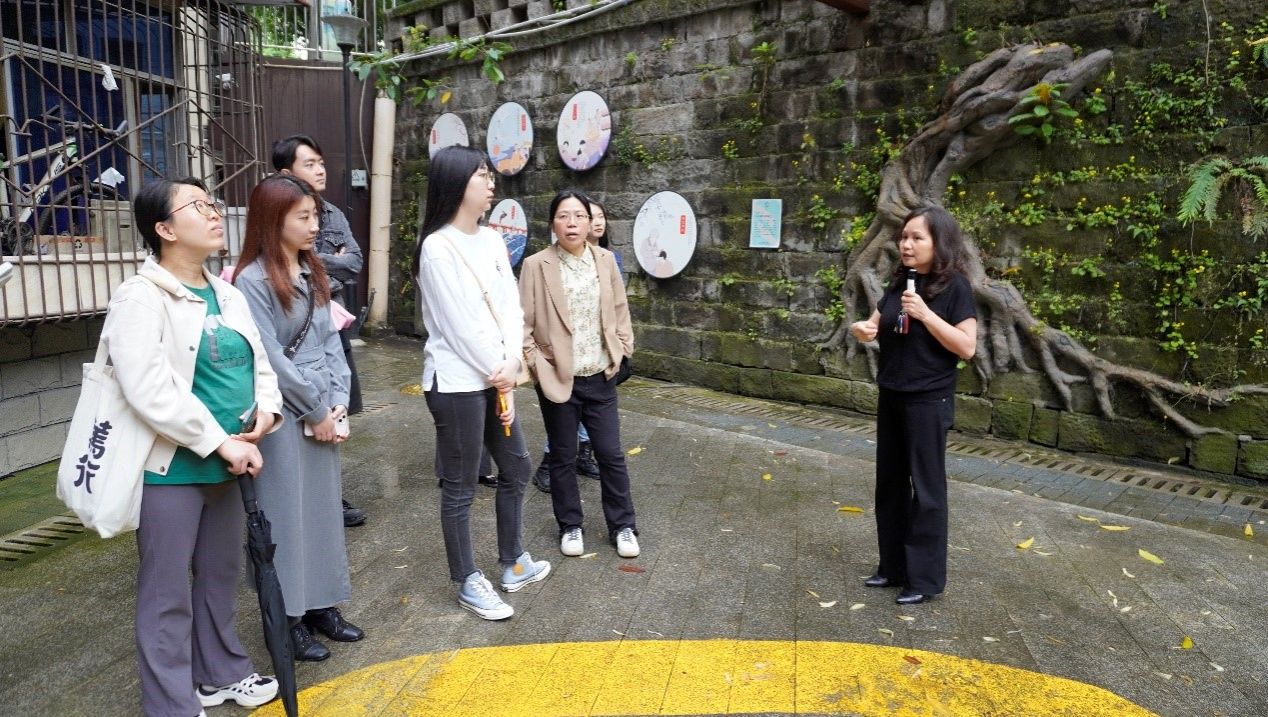 紧接着,师生们来到了合家生态花园。这是邢家桥社区在老旧小区改造中的一个亮点项目。曾经的老旧小区,如今已焕然一新,变成了一个充满生机的花园。谢书记讲述了改造过程中的艰辛与付出,以及改造后给社区居民带来的积极影响。这个项目不仅提升了居民的居住环境,还激发了居民的环保意识和社区责任感。