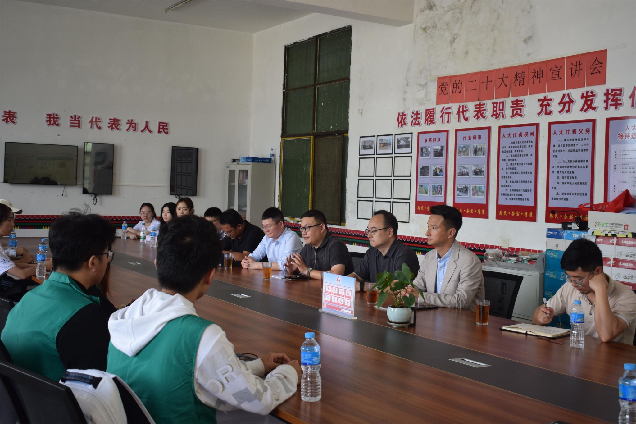 团队一行在加梅村村委会会议室举行暑期“三下乡”社会实践座谈会。团队成员们与具有丰富基层工作经验的一线干部开展深入交流,共话加梅发展。