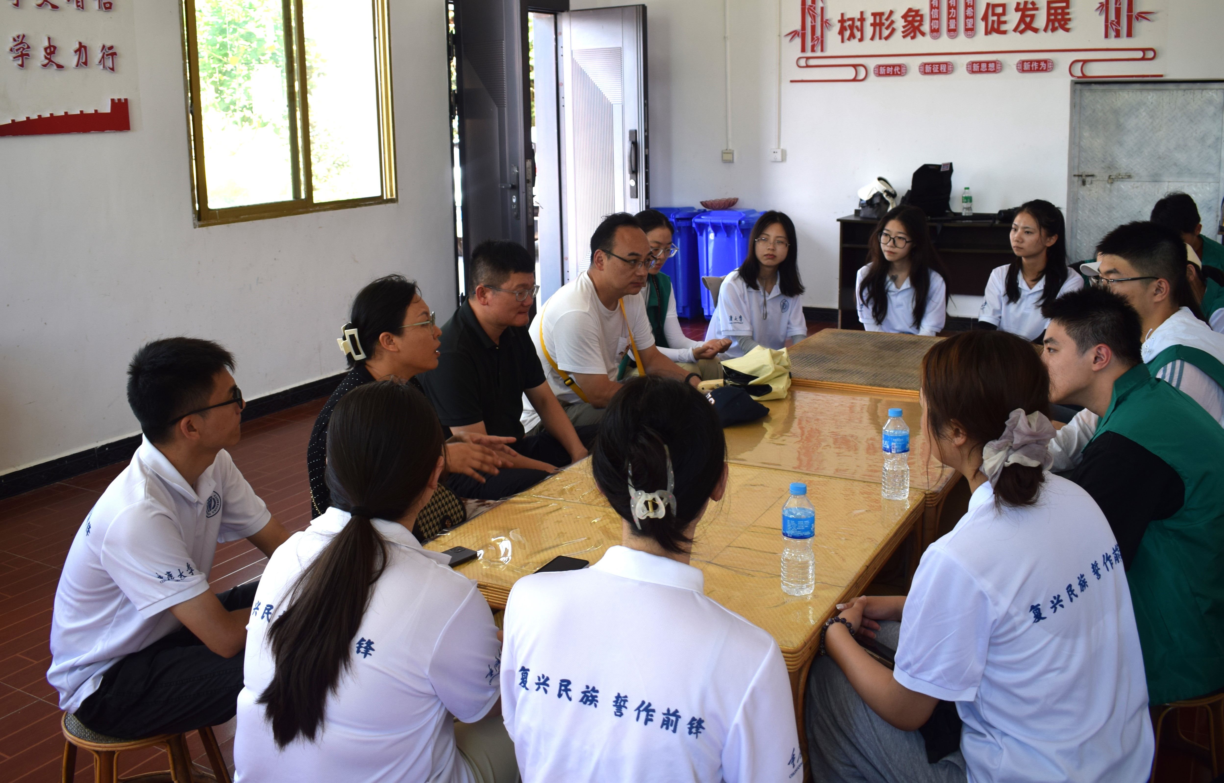 王腰向同学们讲解梅尼新寨历史和瑶族生活习俗