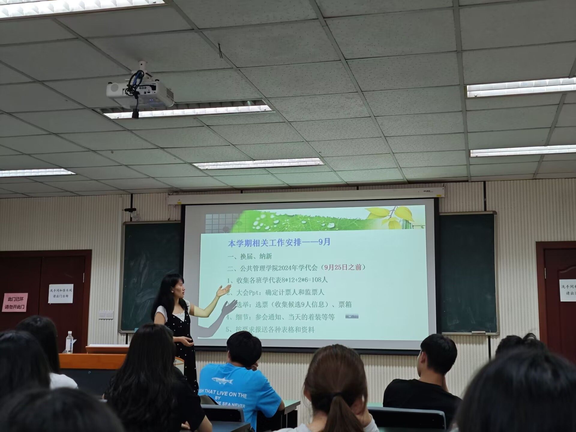 其次,徐柳老师“立规矩”——对参会的所有学生干部提出了要求:保持学习的主动性,努力增强自身能力,同时以积极的态度开展各项工作,履行好作为学生干部的职责。在此基础上,徐老师进一步强调了更加具体的工作要求:方案清晰,预算合理,审批严格,票据完整……参会同学一定会谨记徐老师的悉心指导,加强自身建设,开展好各项活动。