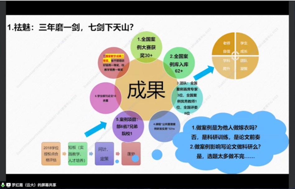 特邀云南大学政府管理学院副教授、云南大学MPA中心副主任、全国MPA优秀教师罗红霞线上为师生分享以“话大道于家常:公管案例选题论证与理论推敲”主题讲座。 学院王辉副院长主持讲座,学院多名老师及MPA学生参与学习交流。