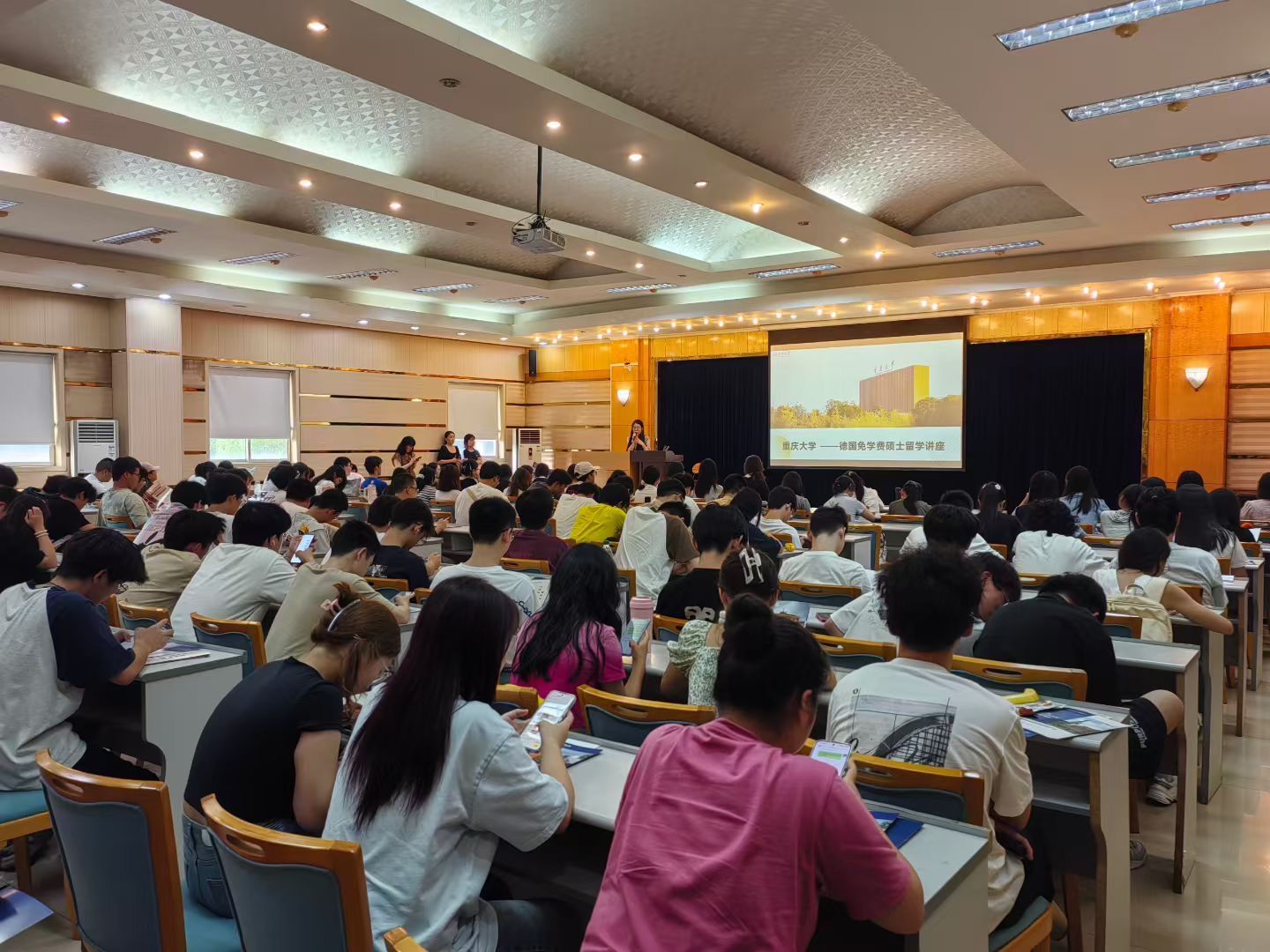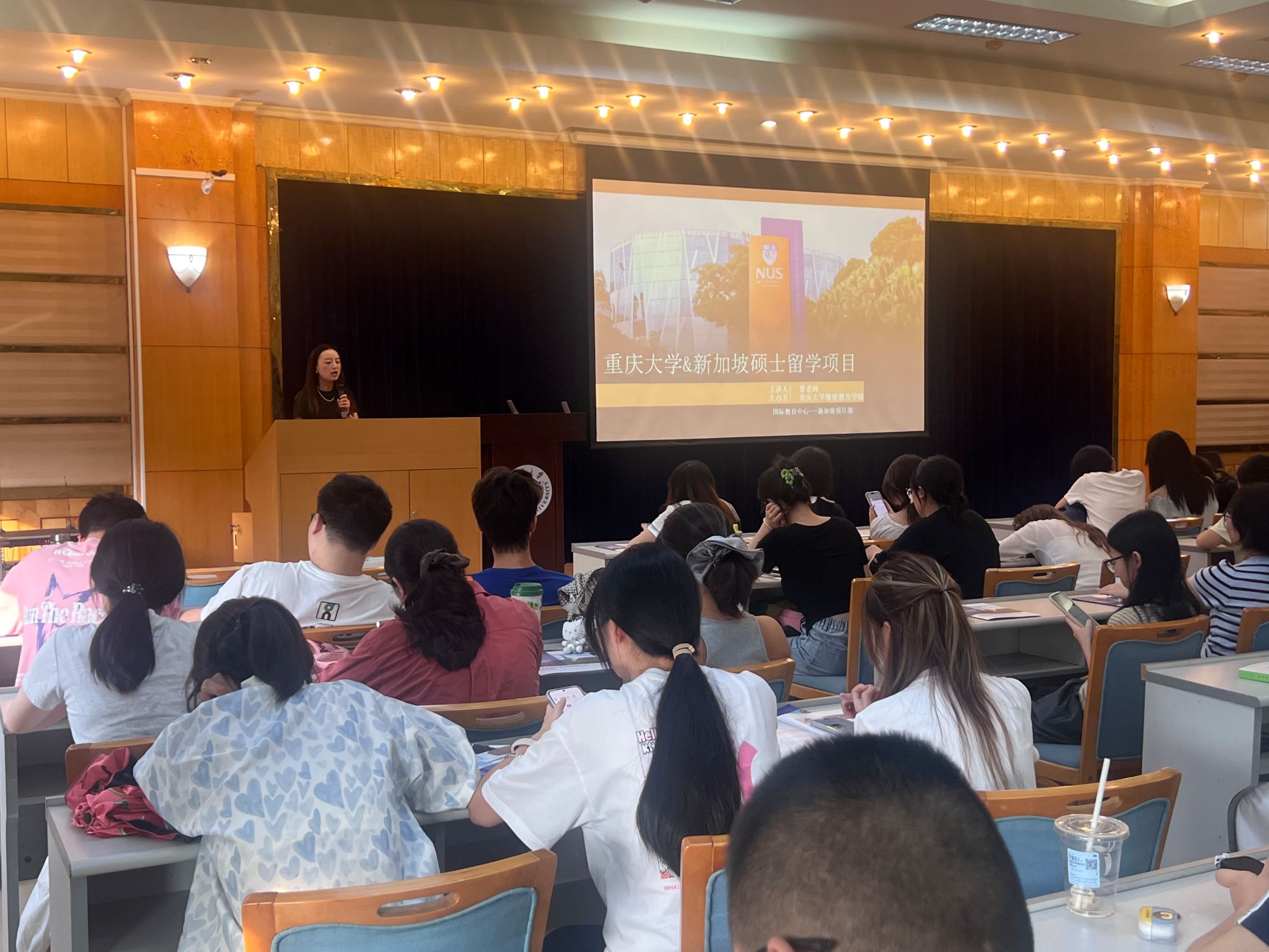 继续教育学院及出国留学预备中心的资深讲师团队为同学们进行了系统化、国际化的生涯规划指导。继续教育学院新加坡、德国、法国、日本和欧洲等出国深造项目的负责老师分别介绍了相关国家的留学政策、费用、院校优势与专业选择,详细讲解了申请流程和语言准备等事项,为有意向出国深造的同学提供了实用参考。