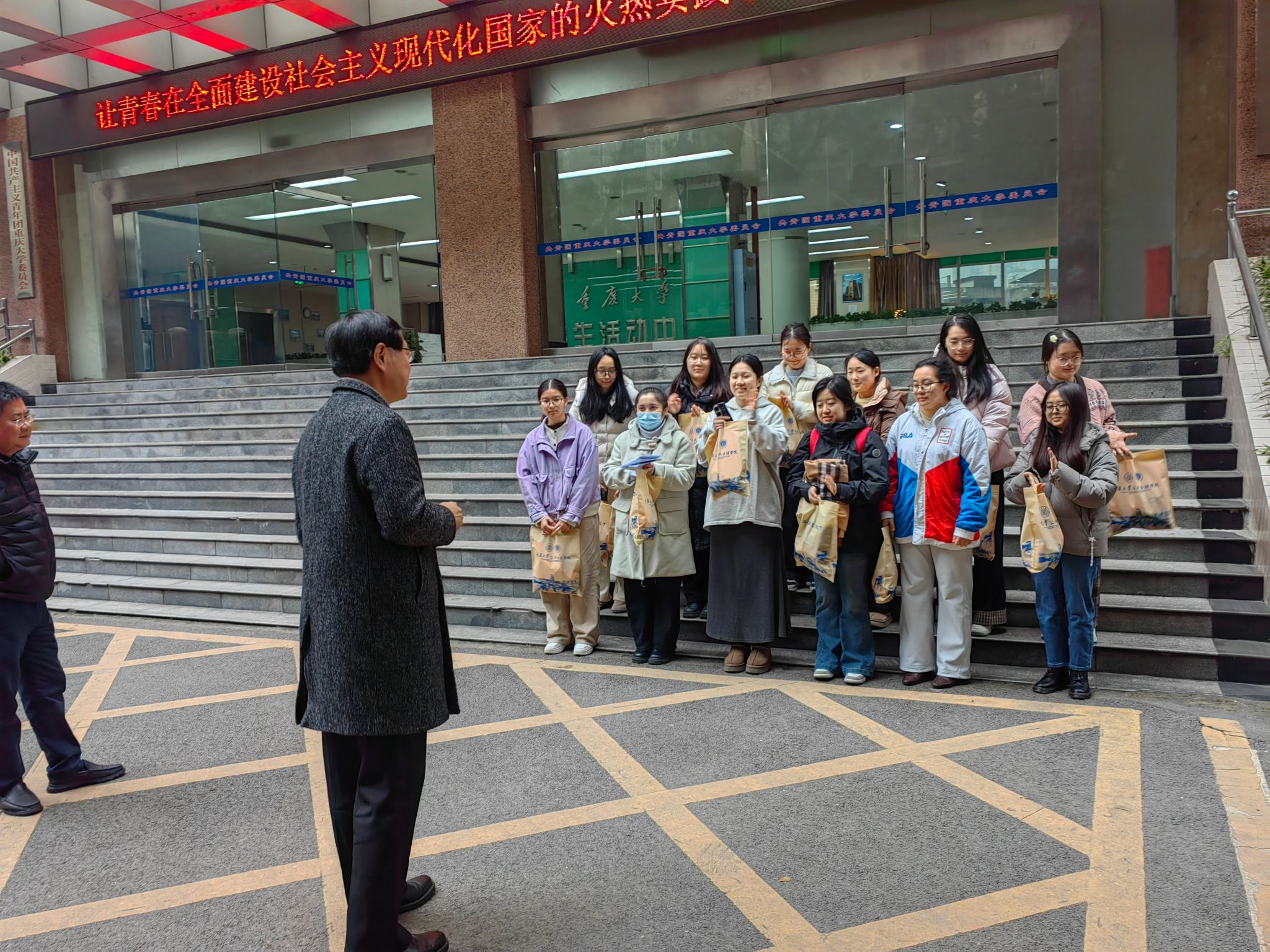党委书记陈东,党委副书记、纪委书记周余斌,副院长丁从明,学办主任兼2022级辅导员王丽娟,团委书记兼2024级辅导员徐柳,2023级辅导员李庆对本科2022级考研同学们进行了考前慰问和动员。