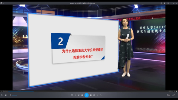 在现场播放的宣传视频中,刘渝琳和彭小兵、丁从明、杨宝、张金凤等系负责人先后就学院的办学基础、专业设置、师资力量、科研成果和学术氛围等方面进行了详细介绍。随后,2020届推免生代表杜晨阳、硕博连读生代表何佩铭作交流发言,他们希望学弟学妹们能够尽快熟悉重大、融入公管,期待大家加入温暖、进步的公管大家庭。