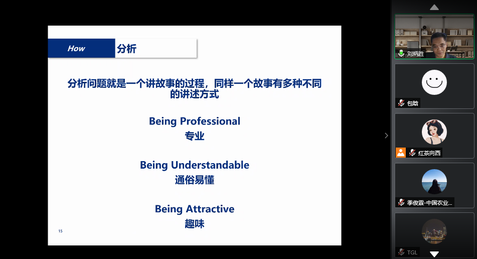 16日下午,刘炳胜教授以“如何做好科学研究”为题和营员进行了交流探讨,他结合自身对科研的理解和学习、科研经历,和大家分享了科研的苦与乐,激发同学们的科研热情。曾国平教授则以“做一名优秀的硕士研究生”为题,和大家分享了他眼中的优秀硕士研究生应该具备的素质与能力。屏幕两端,老师们情绪饱满、深入浅出,同学们求知若渴、气氛热烈。