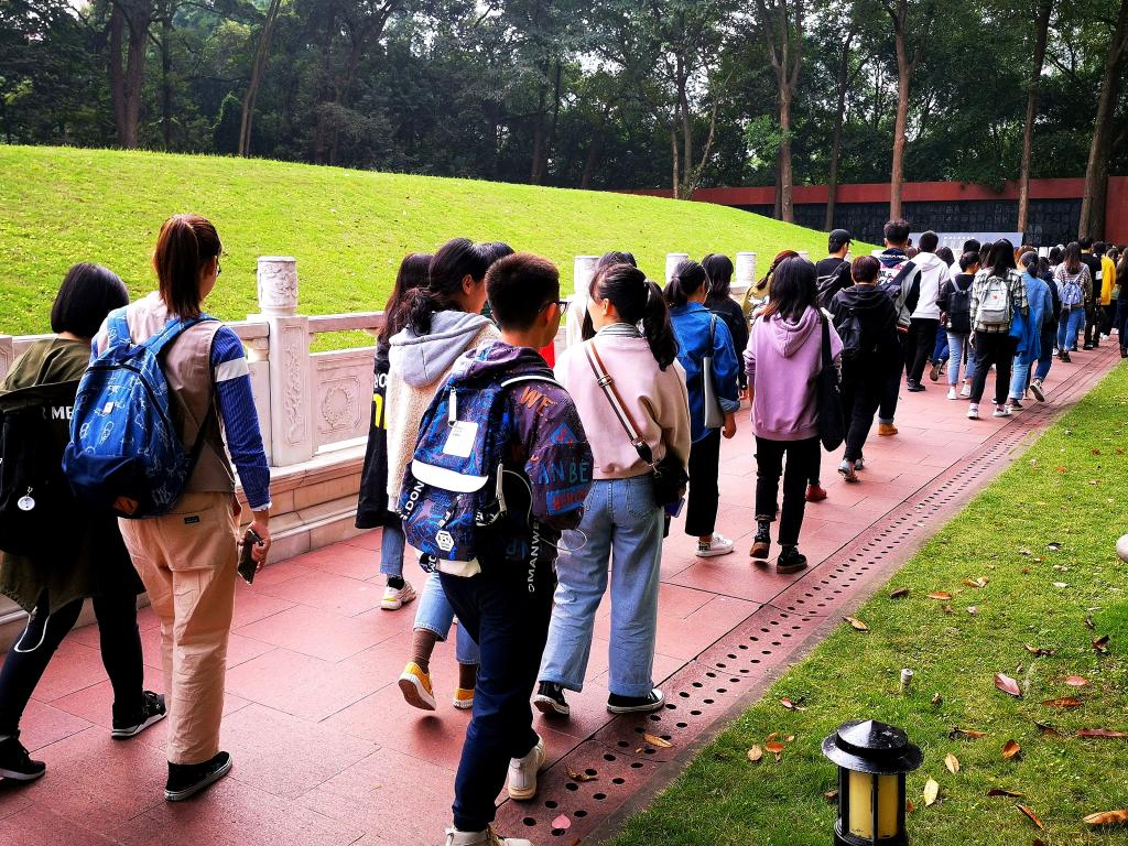 接着,同学们来到了烈士陵园,大家怀着沉重的心情瞻仰了烈士墓碑。恰逢11.27前夕,烈士陵园里烈士雕塑下,很多前来瞻仰的人献上了小白花。红岩精神是烈士对共产主义信念执着追求的高度概括。这是一堂生动的党课,入党积极分子们接受了一次心灵的洗礼。