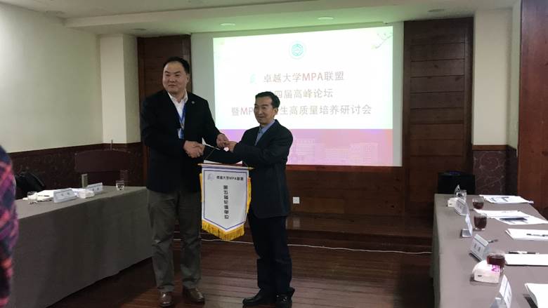 从大连理工大学人文与社会科学学部李鹏书记手中接过联盟旗帜,成为第五届主办单位,卓越大学MPA联盟第五届高峰论坛相约于2020年共聚成人影片