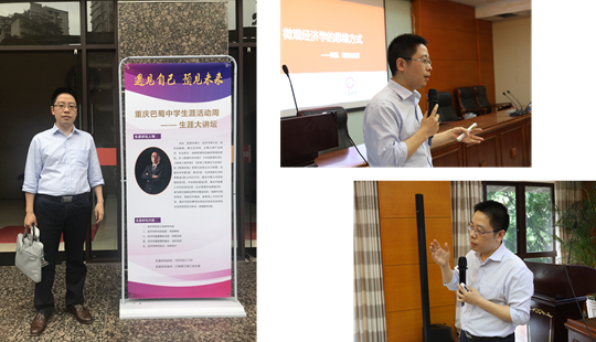 2019年5月30日16:00,由重庆巴蜀中学举办的巴蜀职业生涯大讲坛,在巴蜀中学行政楼三楼3会议厅举行。重大公管学院冉戎教授应邀为巴蜀高中师生,做了主题为“微观经济学的思维方式”的精彩演讲,巴蜀中学200余名师生和部分学生家长参加讲座。