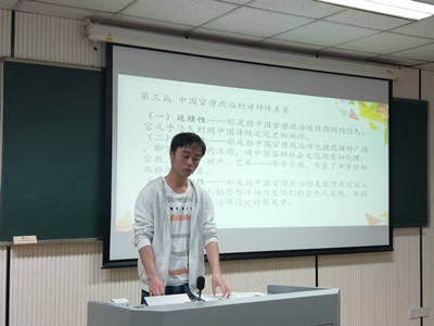下午三点,活动准时开始。首先由主持人郑蕊对本次活动的目的和意义进行了简要阐述,并简要介绍了几位同学。然后,从黄慧珍同学开始同学们先后分享了自己阅读的书籍、自己的收获和阅读带来的感悟。她分享了自己反复阅读了三遍的书籍《成长到死》,这本书让她对自信、自卑和羞耻等情绪有了更深刻的理解,从中明白了悦纳自己、善待自己,合理处理每一种情绪,才会收获全然的生活。紧接着陈康同学从官僚政治的定义、发展过程、影响、转变等方面,用富于辩证的思考让我们看到整体全面的官僚政治,全面系统地介绍了《中国官僚政治研究》这本书。陈伟同学通过活泼有趣的语言介绍了《紫禁城的黄昏》一书,让我们了解到建福宫火灾的真相、清室优待条件和末代皇帝溥仪无奈波折的一生。马一丹同学介绍的《关于TRIZ理论的基本介绍》一书阐述了TRIZ这一方法拥有一整套的系统框架,具有较强的操作性与可重复性,能够创造性的解决问题。最后,卢鑫同学分享的《君主论》一书,讲述了武力在君主统治中发挥极为重要的作用,他的分享内容引人深思,令人受益匪浅。