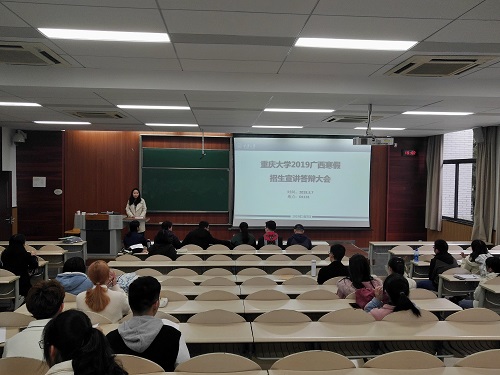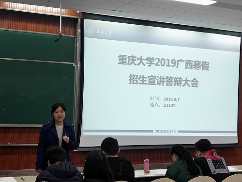 2019广西寒假招生宣讲答辩大会拉开序幕。首先,刘淳副书记致辞。她说:“上一次公管学院负责的是河北省的宣讲团,我们在每年的宣讲工作中不断革新,今年来到了美如画的广西。我们了解到,今年在广西的宣讲得到了中学的巨大反响,在数据分析中发现高三学子对成人影片