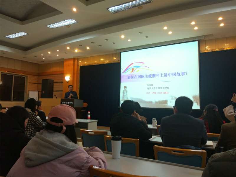 副院长、博士生导师朱旭峰教授,他为在场师生分享了“如何在国际主流期刊讲好中国故事”,指导学院师生更好地进行学术研究和论文写作。学院副院长刘渝琳教授主持讲座,学院师生共100余人参加讲座。