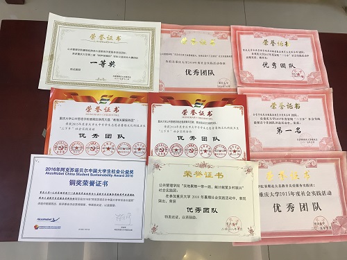 不仅如此,让老师们更加欣慰的是,同学们还会利用暑期实践的机遇,联系自身专业所学,将知识与实际生活相结合。2011年,实践团在贵州西江苗寨进行支教调研的同时,还立项参加“挑战杯”全国大学生课外学术科技作品竞赛,该团队的《旅游业发展背景下民族社区环境保护的组织机制创新》一文在作为团队指导老师的罗章教授指导下,获得了第十二届“挑战杯”西安世园会专项赛全国特等奖;2015年暑期团中央赴陕西大荔教育关爱服务团在2016“阿克苏诺贝尔中国大学生社会公益奖”获铜奖;2017年赴“安徽歙县教育关爱服务团”由马铭阳、张金梦、寇桂涛撰写《党员有党性,千亩种荒山》成功收录到《“千校千项”》,2018暑期“实地聚焦一带一路,献计献策乡村振兴”为主题的实践活动,入围团中央“丝路新世界·青春中国梦”全国专项以及重庆市暑期“三下乡”重点项目、成人影片