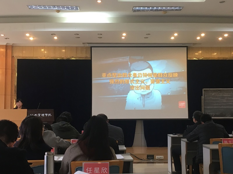 党委组织全体教职员工在学院多功能厅参加政治学习。学院党委委员蒲艳萍教授为大家讲授“集中整治形式主义官僚主义”专题党课。学院全体教职员工参加学习。学院党委书记张邦辉主持学习。