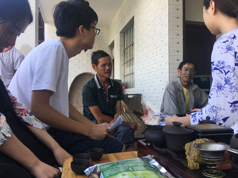 7月26日,实践团成员来到了风光秀丽的大罗村进行调研。与张村长进行访谈之后,在张村长的带领下,去到贫困户家里了解村民们的生产生活情况。张村长介绍,大罗村凭借冬暖夏凉的地理条件,并依托红花湖的旅游资源,大力发展了旅游产业,形成了旅游扶贫的一个思路。除了旅游扶贫,大罗村还通过发展青脆李、银杏、养蜂、木瓜等产业为贫困户创收,政府提供补贴,贫困户根据自身情况选择性种植。走访贫困户的过程中了解到,因为正处旅游旺季,贫困户的农产品在当地就可以销售出去,而不用再运到镇上销售。但是,部分拥有劳动能力的贫困户宁愿打散工赚钱,也不愿扩大产业规模提高产业收益。针对此情况,实践团成员详细介绍了从政府那里了解的补贴政策、信贷政策、培训政策,以帮助其提高对产业扶贫政策的认识。