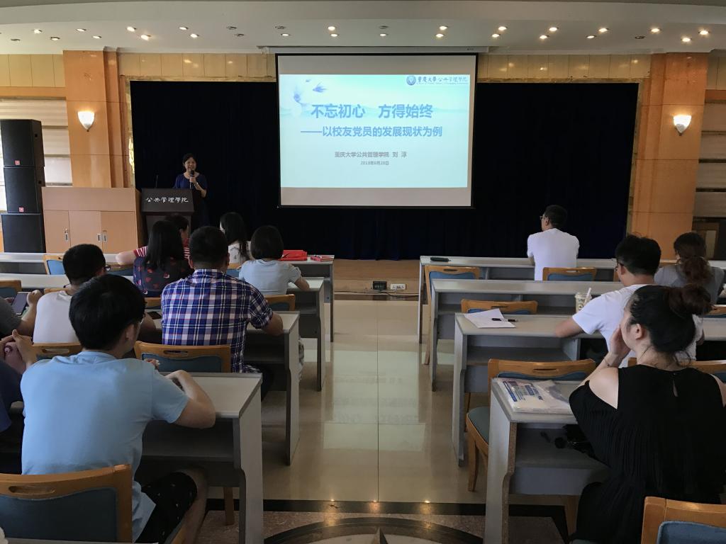 然后,刘淳为全体同志上了毕业前最后一堂党课,题目为“不忘初心、方得始终——以校友党员的发展现状为例”。她借走访慰问校友的契机,梳理了部分校友党员的学习经历和工作情况,并深情回忆了他们在校读书期间的点点滴滴,和大家分享了他们的成长故事与心得。她介绍到,成人影片