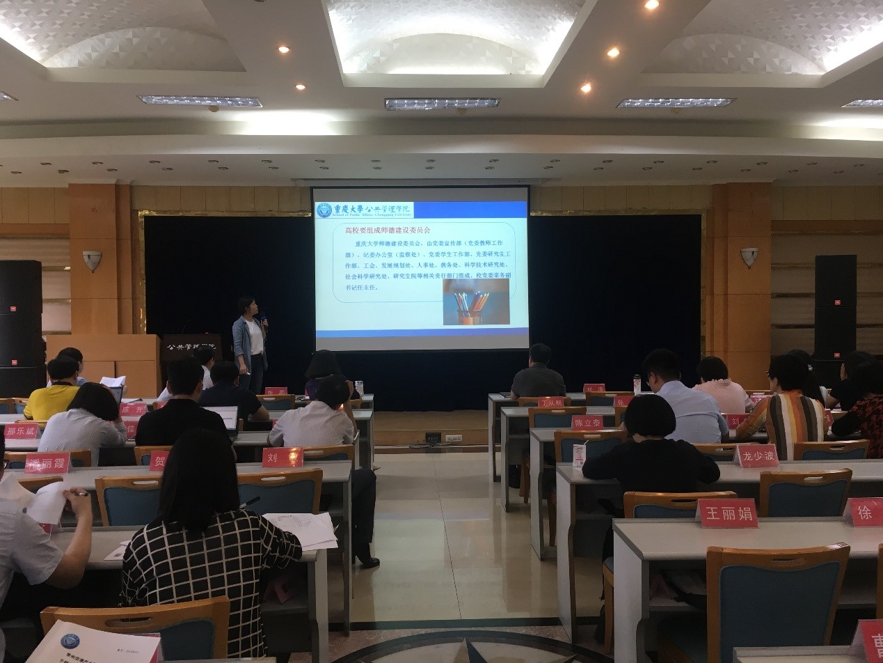 党委于5月24日下午3点组织了《关于印发<关于建立健全师德建设长效机制的实施意见(修订)>的通知》(重大委〔2018〕5号)专题学习会。全院教师在学院二楼多功能厅进行了学习。学习由学院党委副书记、纪委书记刘淳主持。