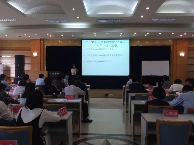 培训由中国心理协会会员、心理学博士刘敏讲师主讲。讲座前刘敏老师做了精心准备,与学院辅导员、所带学生做了深入的调查了解。讲座内容主要包括大学生心理问题的影响因素,95后大学生的生活特点和现实表现及如何对症下药,以及大学生“特殊情况”的识别与教师与学生的相处之道。讲座中刘敏老师从心理学专家角度为各位导师分析了95后大学生在价值追求、焦虑产生、与人相处等方面的特殊性,为导师有效认识和与学生交流提供了一系列行之有效的策略。