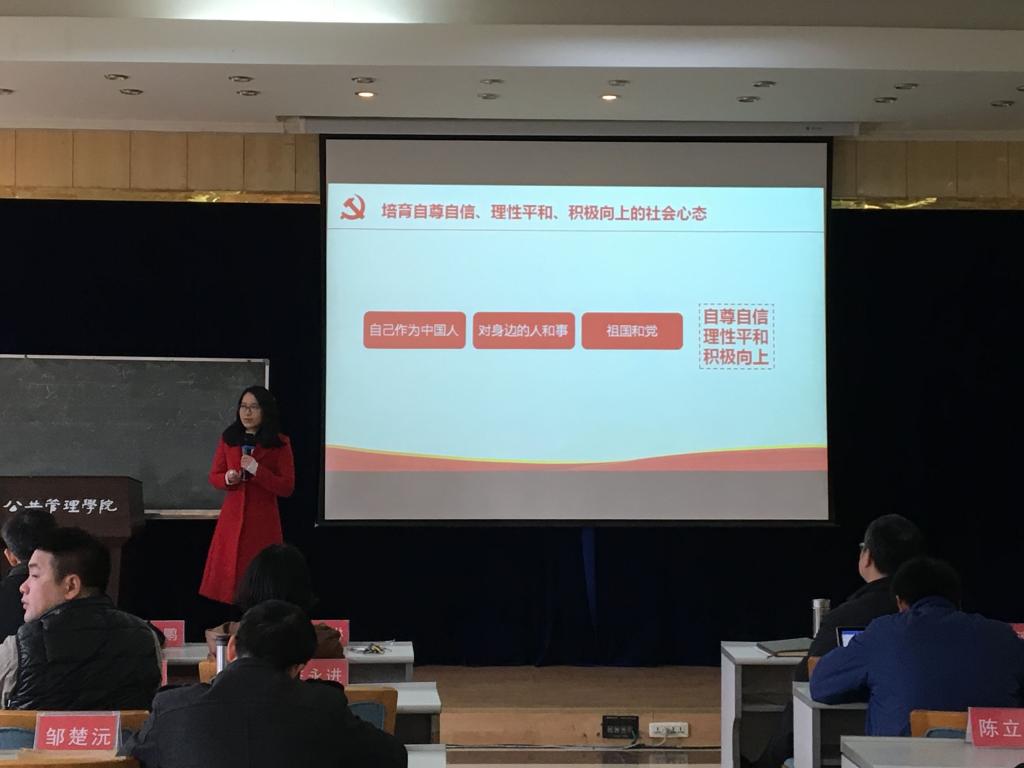 党委组织学院全体教师在多功能厅进行专题学习,深入学习党的十九大报告。本次学习由学院党委书记兼常务副院长张邦辉主持,由社会工作系张金凤老师主讲。