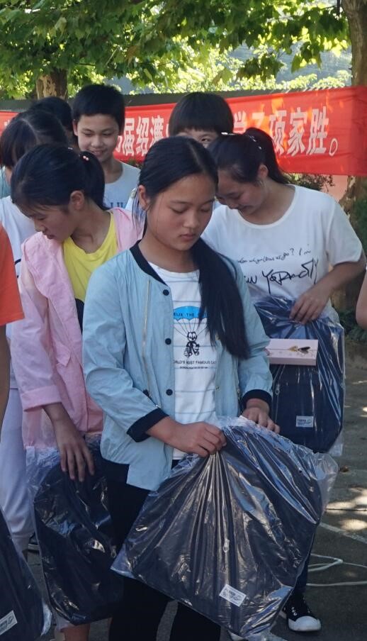 孩子们的欢笑声打破了暑期校园的寂静,热闹非凡的开班仪式让“留守”的校园也不再寂寞。2017年7月12日上午,服务团在王丽娟老师和支愧云老师的指导下,给每一位报名参加本次暑期实践课程的儿童分发了精心准备的礼品——书包和餐具。“好喜欢这些大哥哥大姐姐呀,希望这几天能跟他们有个开心快乐的相处。”小个子的吴昱波笑道。