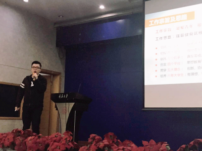 自学校评选通知下发以来,学院研团委就积极动员全体学生干部对照评选细则分版块、分部门准备各项工作的图文影音资料。经过材料审核,共有包括公管学院在内的13个学院研究生分团委进入现场答辩环节。4月19日的答辩现场,公管学院研团委书记包晗主要从工作宗旨、具体思路、组织建设、特色工作以及主要成绩等方面向在场的全体师生作了汇报。他围绕共青团“凝聚青年、服务大局、当好桥梁、从严治团”的四维工作格局,提出了学院研团委“坚持一个目标、把握两个强化、依托三个抓手、夯实四个平台、贯穿五大理念、培养六有大学生”的具体工作思路,并在实际工作中明确职责分工、找准工作载体、积极贯彻落实。他指出,在过去的2016年,学院研团委在学院党委和上级团组织的指导下,在组织建设、思想引领、学术分享、素质拓展等方面作了诸多尝试与探索,并取得了一定成绩,助力学院研究生在学校各项活动、赛事和实践中有身影、有声音、有成绩、有影响,展现了公管研究生较高的综合素质与良好的精神风貌。随后,他还就习近平总书记在全国高校思想政治工作会议的重要讲话精神,针对学院研团委未来的工作如何助力学院全员育人、全过程育人和全方位育人进行了分享。