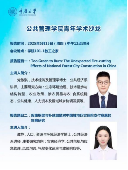 公共经济系的党敬淇博士和谭静博士分别做了题为《Too Green to Burn: The Unexpected Fire-cutting Effects of National Forest City Construction in China》《叙事框架与补贴激励对中国城市巨灾保险支付意愿的影响研究》的报告。党敬淇的研究利用交叠倍差法揭示了中国国家森林城市建设通过完善火灾预防和响应机制削减火灾频率与强度的政策边际因果效应,刻画了综合性生态环境政策产生的预期外防灾减灾收益。谭静的研究基于行为经济学理论框架,采用多阶段分层随机抽样方法,在成都和重庆选取1000户城市家庭开展实验研究。通过2×3因子设计(叙事类型×补贴方式),运用混合研究方法系统考察了不同干预策略对巨灾保险支付意愿的影响机制。研究发现,情感叙事框架通过风险感知和情感唤起双重路径显著提升投保意愿,且与定向补贴政策存在显著协同效应。研究结果为优化巨灾保险政策设计和风险沟通策略提供了重要参考。
