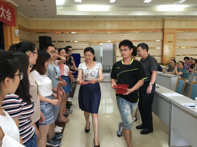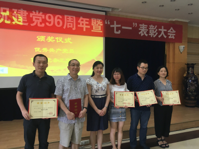 、马克思主义班子成员上台为获奖的先进支部代表和个人颁发荣誉证书。