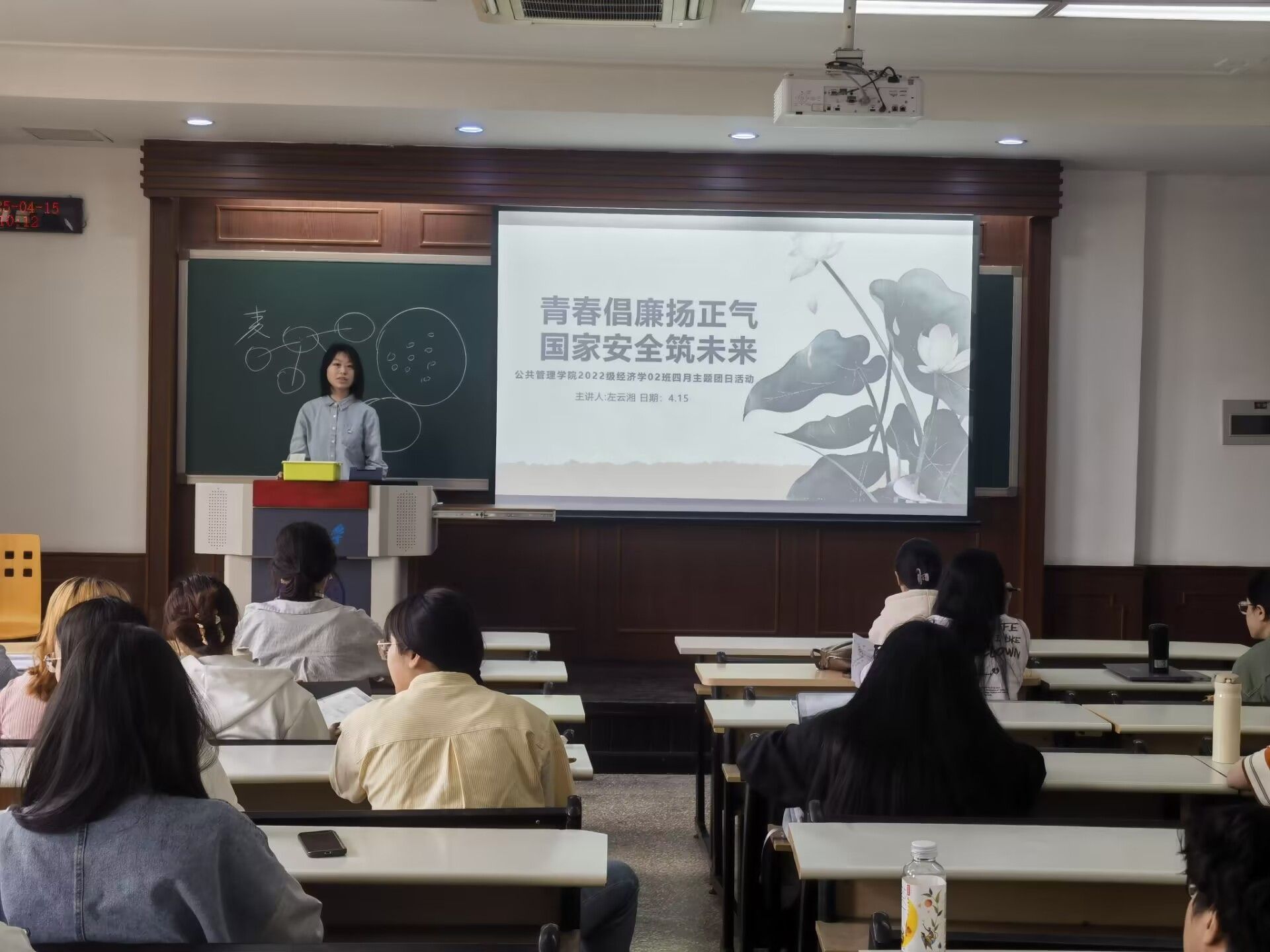 本科生一、四支部联合2022级本科生6个团支部在第五教学楼308教室开展了“样板支部新征程,凝心聚力助成长”党建带团建之“青春倡廉扬正气,国家安全筑未来”主题团日活动。本次活动旨在深入学习贯彻习近平总书记关于廉洁文化建设的重要论述,厚植全民国家安全意识,积极投身国家安全教育实践。活动由经济学01班和经济学02班团支部具体承办,来自经济学、国际经济与贸易、城市管理、行政管理、人力资源6个专业的团员都积极参与,展现了支部成员的良好精神风貌。