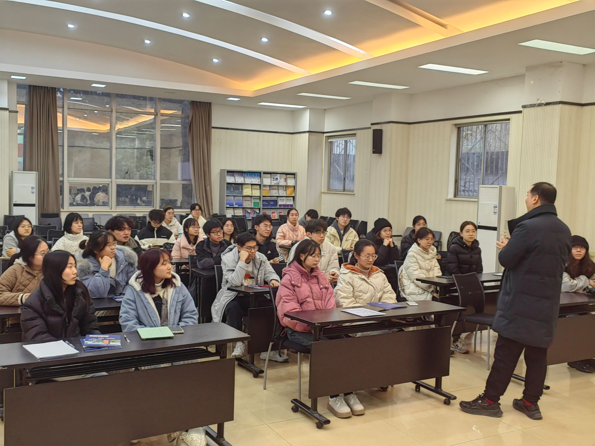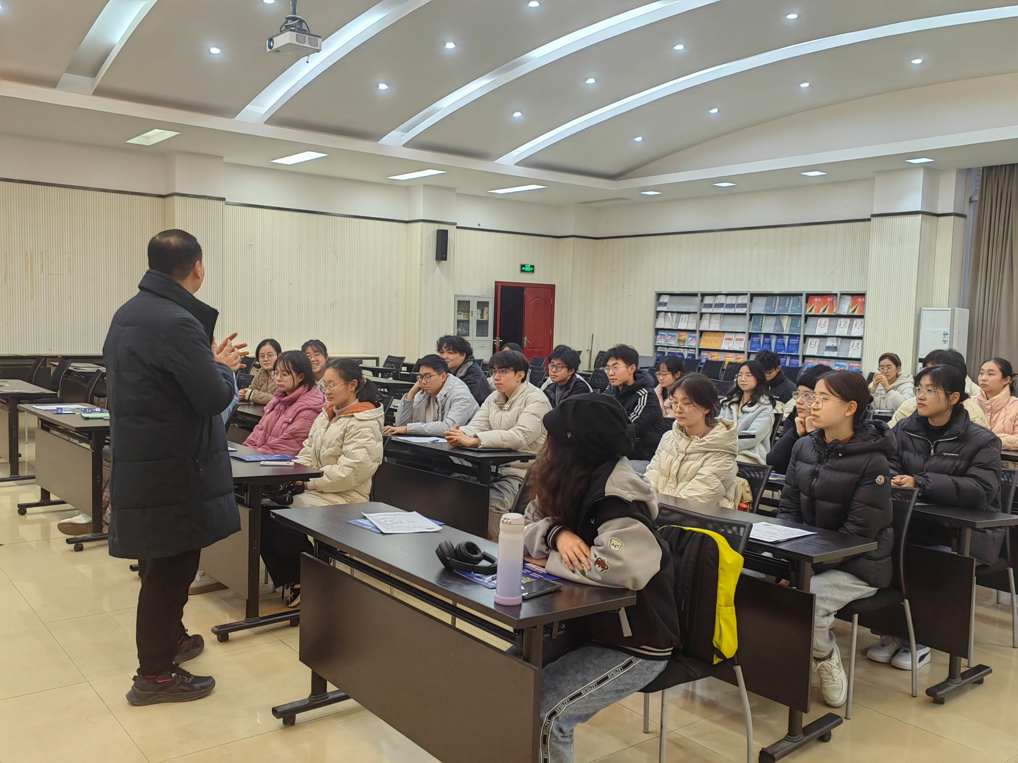 紧接着,周洲老师就毕业就业、攻读研究生、出国深造等方向,结合往届优秀毕业生范例进行全面细致的讲解。他指出,学生应该积极与家长保持密切联系,明晰自己的未来发展方向,遇到有困惑的地方及时向老师求助,解决困难。只有这样,才能高效率地完成自己的职业生涯规划这一人生课题,更好地保持良好的心理状态。