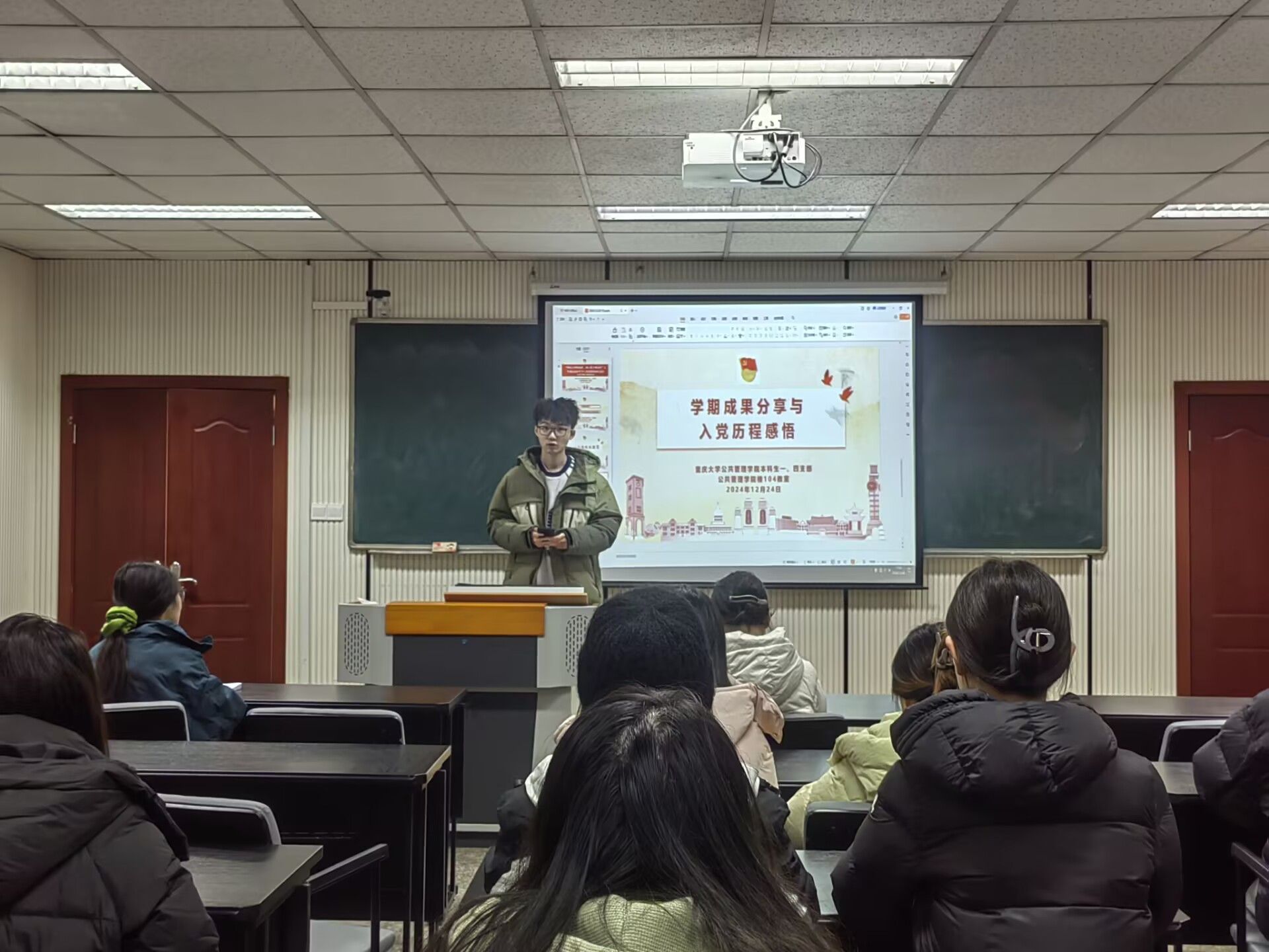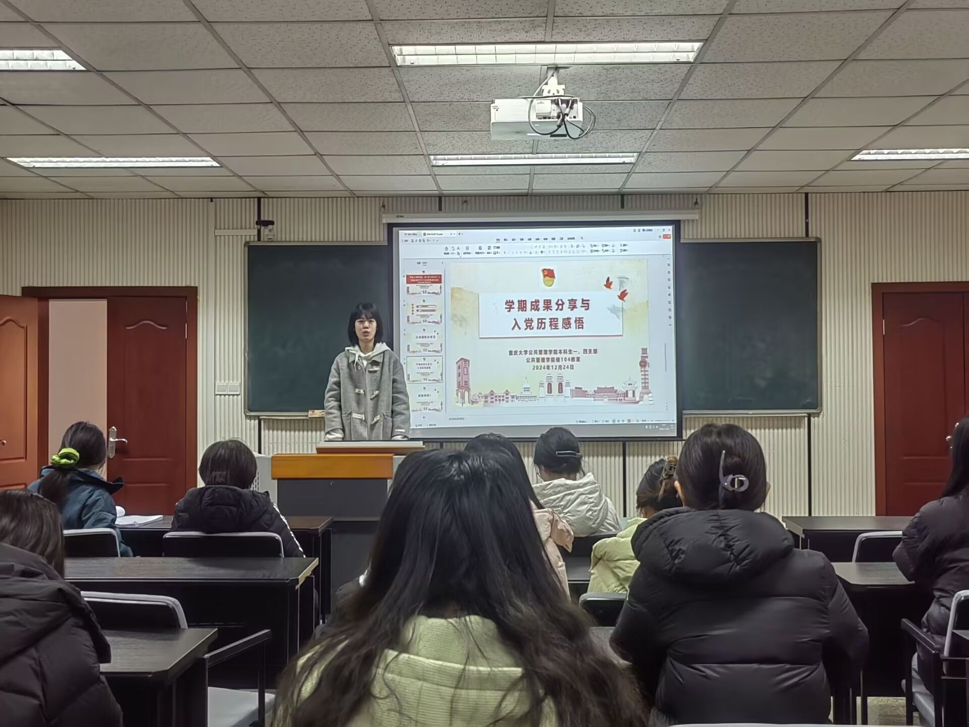 最后,王丽娟总结道,此次交流会,不仅是对大家辛勤付出的肯定与表彰,更是一个宝贵的学习与交流平台。在这里,无论是学习上的累累硕果,还是入党过程中的点点滴滴,都将成为照亮彼此前行道路的璀璨星光。她愿每一位参与者都能从中汲取力量,收获满满,以更加饱满的热情和坚定的信念,迎接新的挑战与机遇。随着大家的掌声,本次“学期成果分享与入党历程感悟交流会”圆满结束。