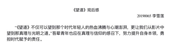观影结束后,同志们感触颇丰。李雪莲同志表示:“《望道》不仅可以望到那个时代年轻人的热血沸腾与心潮澎湃,更让我们从影片中望到那真理与光明之道。”袁凤同志表示:“在观影过程中,不仅由衷地敬佩革命前辈对于真理和信仰的坚持;也会很自然地从百年前先辈们的追求,联系到如今的幸福生活,意识到我们青年一辈更要坚定信仰,勇担时代重任。”