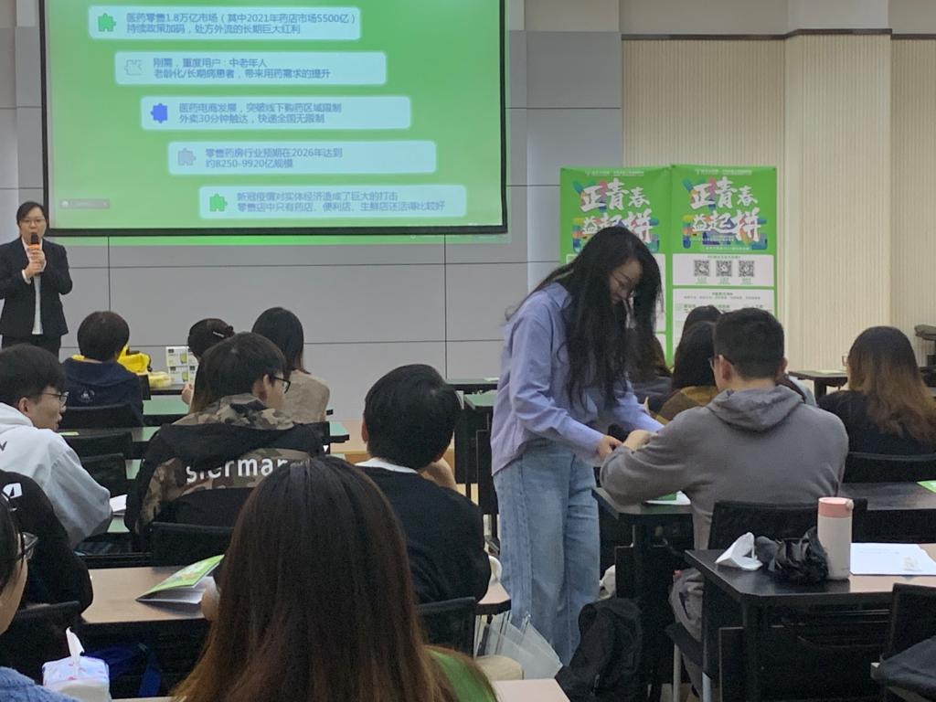 本次活动由公管学院本科生一支部组织委员陈烨靖同志主持,邀请了长沙市益丰大药房的张部长和熊经理开展宣讲活动。本科生一、四支部全体党员全部参会,其中,未返校人员线上参会。