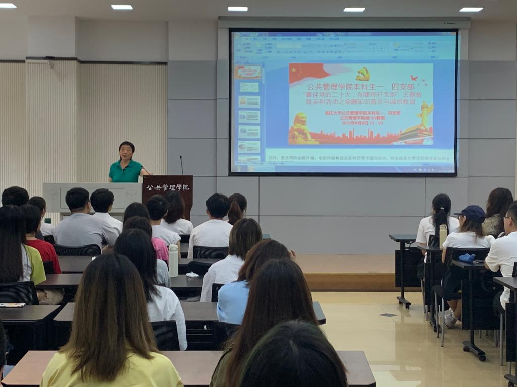 本科生一、四支部于学院楼102教室举行“喜迎党的二十大,创建标杆支部”主题教育系列活动之金融知识普及与诚信教育主题活动。